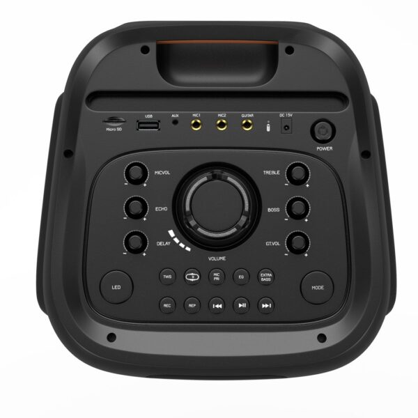 پشتیبانی از : USB , Micro SD , Bluetooth , FM , AUX , TWS , 2 MIC Input , Guitar Input , Mic Priority