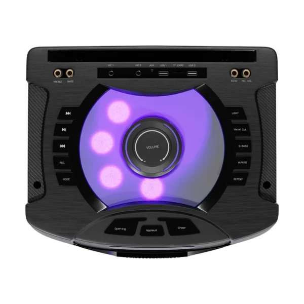 اقلام همراه بلندگو : دفترچه راهنما – کابل نور – کابل پاور – میکروفون بی سیم – کابل AUX -ریموت کنترل
