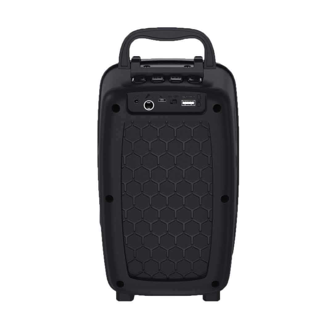 توضیحات تکمیلی : اسپیکر بلوتوث قابل حمل با میکروفون: 5W , روشنایی LED , نگهدارنده موبایل , ورودی میکروفون