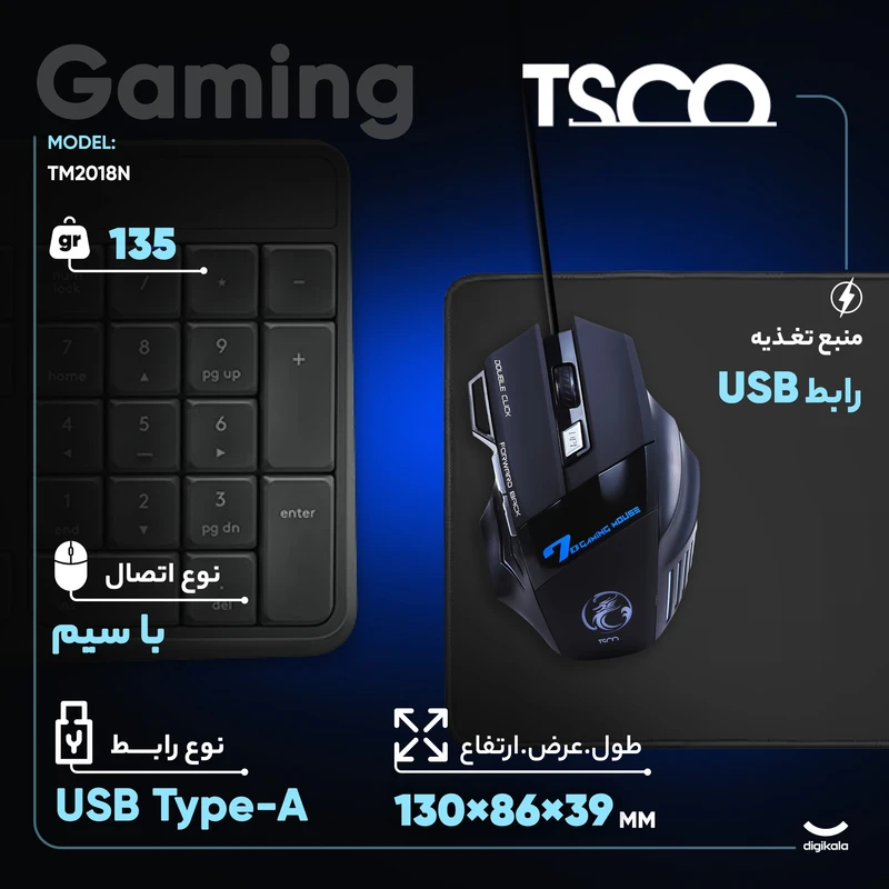 ابعاد : ۳۹×۸۶×۱۳۰ میلیمتر