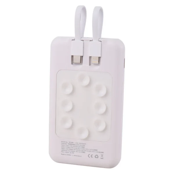 مشخصات فنی : Chipset : SW۶۲۱ / Type-C Output:۵V۲.۴A, ۹V۲.۲۲A ,۱۲V,۱.۶۷A(۲۰W) / Type-C Line Output:۵V۳A ,۹V۲A ,۱۰V۲.۲۵A,۱۲V۱.۵A(۲۲.۵W) / Lightning Line Output:۵V۲A(۱۰W) Max Output: ۲۲.۵ W / پروتکل های شارژ : QC۲.۰ , QC۳.۰ , PD, PPS , AFC, FCP , SCP / دارای کابل متصل تایپ سی و لایتنینگ / مدت زمان شارژ : ۶ ساعت / طول عمر : ۴۰۰ مرتبه / به همراه کابل شارژ تایپ سی