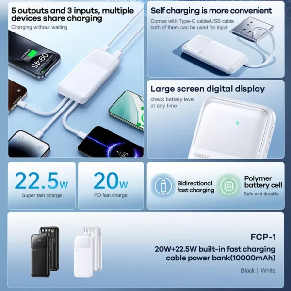 پاوربانک ریمکس مدل FCP-1 ظرفیت 10000 میلی آمپر ساعت