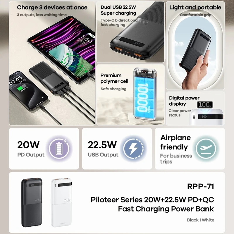 پاوربانک ریمکس مدل RPP-71 ظرفیت 10000 میلی آمپر ساعت