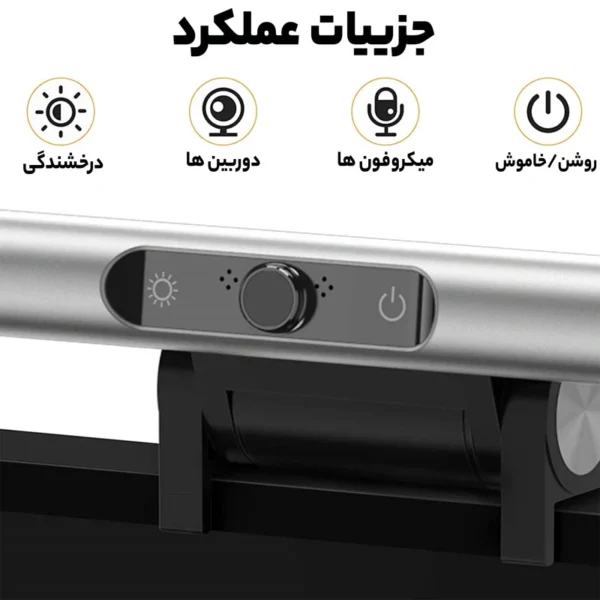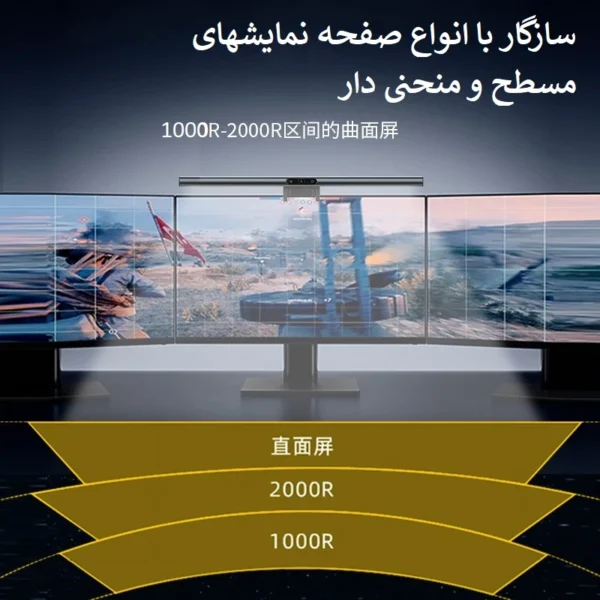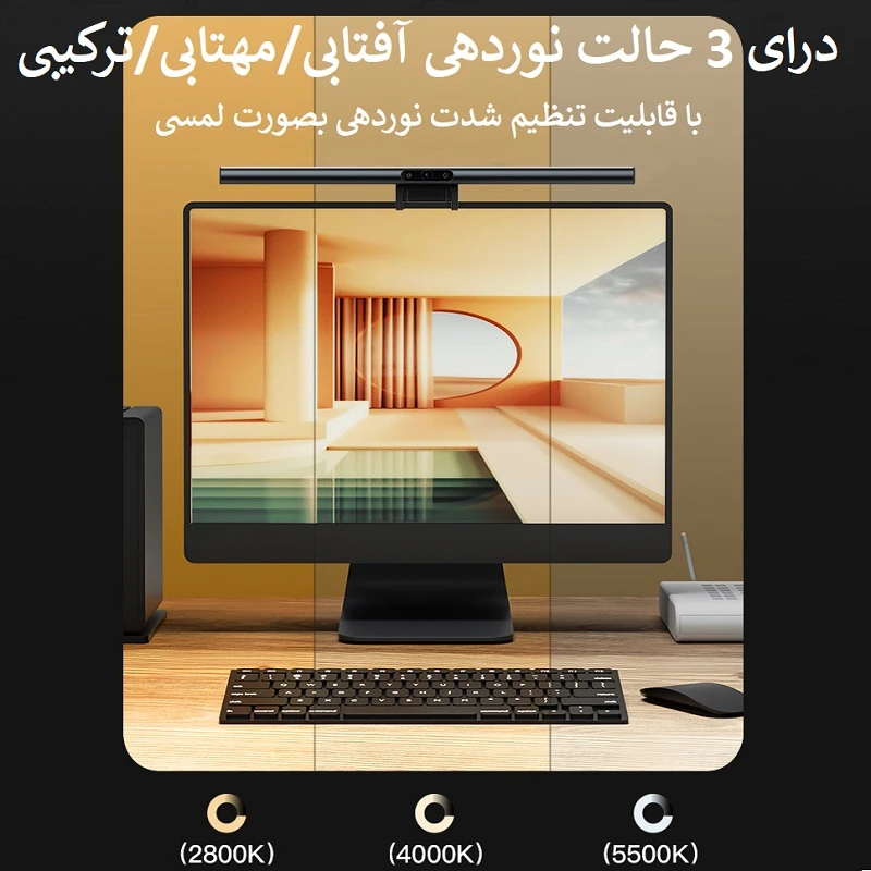 مشخصات فنی : تنظیم نور در بازه ی ۲۹۰۰ تا ۵۰۰۰ کلوین ساخته شده از آلیاژ آلومنییوم + PC + ABS دارای ۳ حالت نور دهی آفتابی/مهتابی/ترکیبی امکان تنظیم آسان میزان شدت نوردهی با لمس نصب آسان روی صفحه نمایش دارای پورت Type-C برای تأمین انرژی بدون ایجاد مزاحمت برای دید مانیتور سازگار با انواع صفحه نمایشهای مسطح و منحنی دار ۲۰۰۰R , ۱۰۰۰R