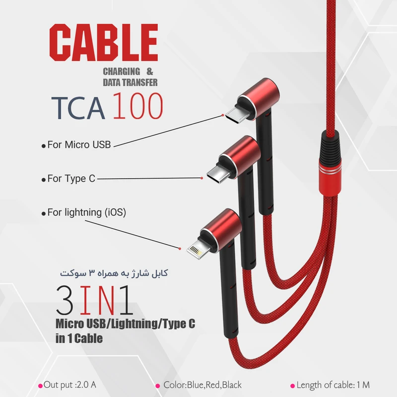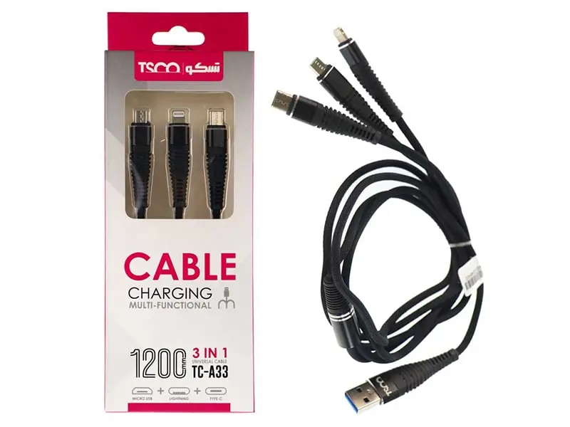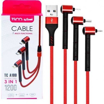 کابل تبدیل USB به MicroUSB/Lightning/type-C تسکو مدل TC A100 طول 1.2 متر