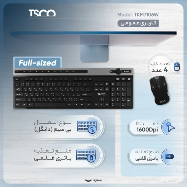 نوع و تعداد باتری : ماوس:1*AA Alkaline , کیبورد:1*AA Alkaline