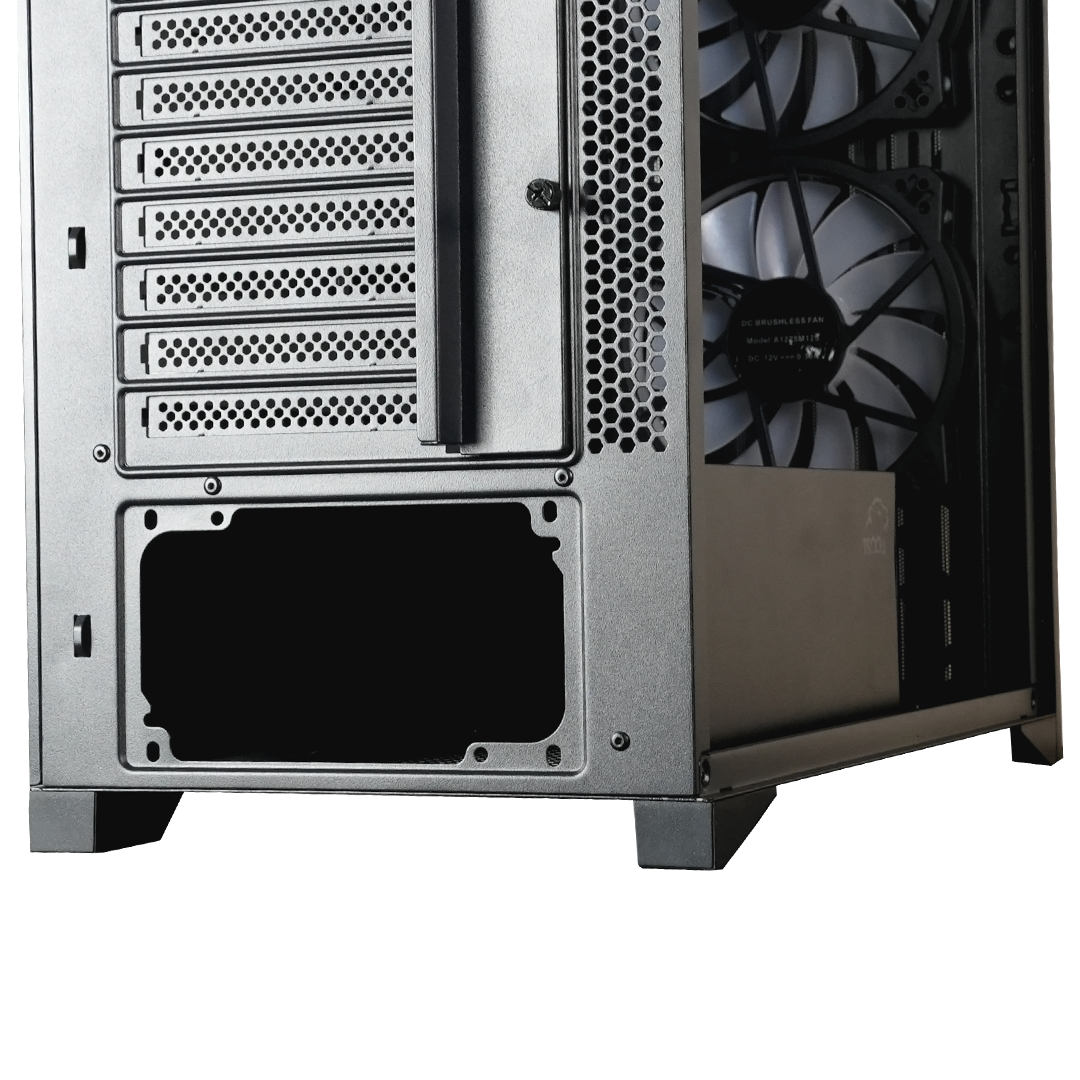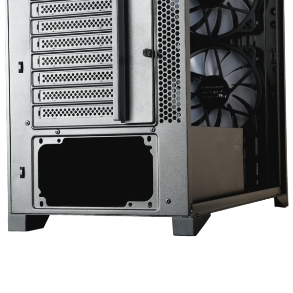 تعداد و ابعاد فن : جلو: 3*140mm/3*120mmM/2*160mm (فن اختیاری) , عقب: 1×120/140mm (فن اختیاری) , بالا: 3*120mm/2*140mm (فن اختیاری) , پایین: 1 * 120 میلی متر (فن اختیاری) , جعبه برق: 2 * 120 میلی متر (فن اختیاری)